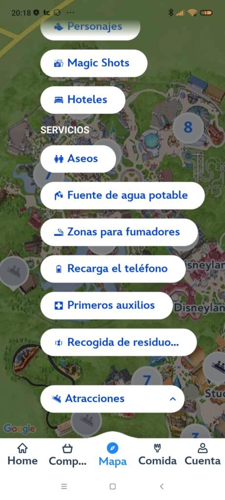 Si no sabes dónde están, no te preocupes. Simplemente abre la app de Disneyland París y ve a la sección «Actividades y servicios». Desplázate hacia arriba y selecciona la opción «Recarga tu teléfono». ¡Así de fácil podrás ver los puntos de alquiler en el mapa!